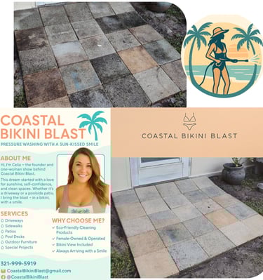 Hi, I’m the face (and hands!) behind Coastal Bikini Blast. As a solo female business owner, I bring professionalism, attention to detail, and a personal touch to every project. I believe a clean space doesn’t just look good—it feels good. From driveways to patios, I handle each job with care, efficiency, and a smile -- and yes in a bikini. 👙